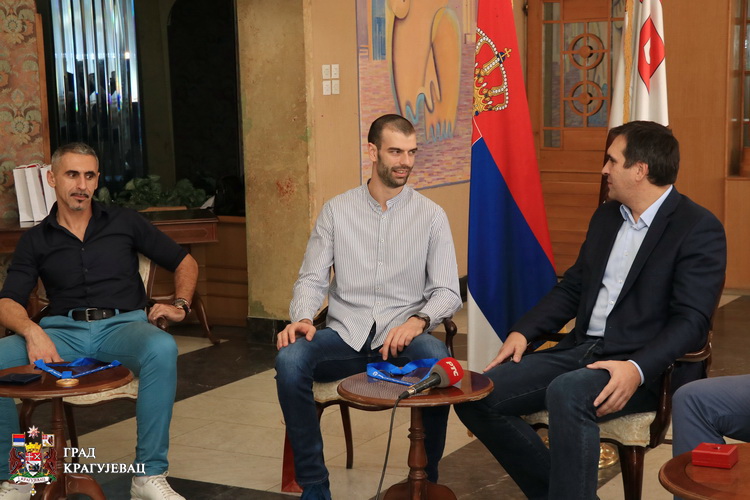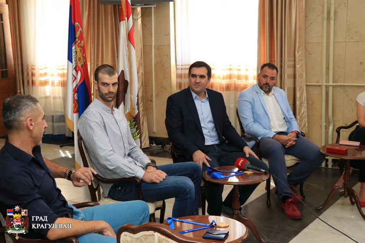 Градоначелник Николић је „златним“ Крагујевчанима уручио златнике са ликом Светог Ђорђа и грбом града Крагујевца, док је заузврат добио дрес репрезентације са потписима свих играча. Такође, Лазар Ћировић и Радивоје Радаковић потписали су се на одбојкашку лопту, која ће убудуће красити витрине СПД Раднички.