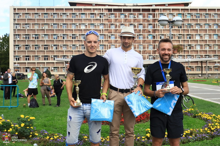 На финиш полумаратонске стазе дужине 21km и 100m и ове године је први стигао Есад Хасановић из Новог Пазара и тако постао двоструки шампион Крагујевачког полумаратона. Друго место освојио је Ненад Ристић из Лазаревца, док је треће место освојио Саша Миљковић из Косовске Митровице.