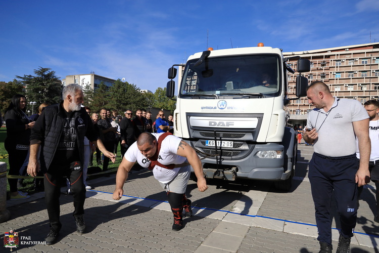 На платоу испред зграде Градске управе данас се одржава такмичење за најјачег човека Србије „Strongman Open Kup Srbije Kragujevac 2022“ који под покровитељством Града, организују Спортски савез Крагујевца и Body building i Fitness klub “Olympia“.