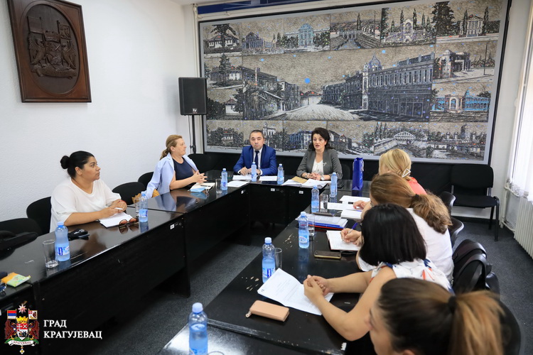 Представници Министарства за људска и мањинска права и друштвени дијалог, Нинослав Јовановић, државни секретар и Олена Папуга, државна секретарка сусрели су се данас са представницима града Крагујевца, Горданом Дамњановић, чланом Градског већа за здравствену и социјалну заштиту, Николом Рибарићем, начелником Градске управе за друштвене делатности и члановима Мобилног тима града Крагујевца и радних тимова за израду Стратегије за унапређење положаја Рома и Ромкиња 2016-2026.