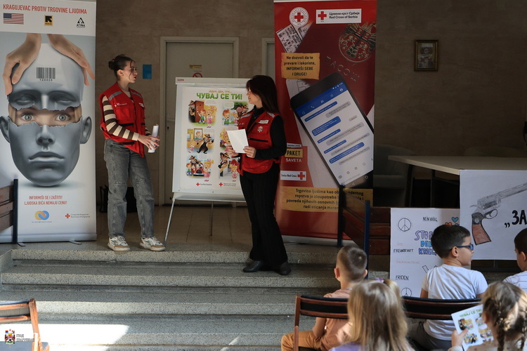 У оквиру обележавања Европског дана борбе против трговине људима, Одељење за људска и мањинска права, родну равноправност и борбу против трговине људима у сарадњи са Црвеним крстом Крагујевца организовало је радионицу за ученике првог и другог разреда ОШ „Милутин и Драгиња Тодоровић“. У име града Крагујевца, радионици је присуствовала Јелена Павић, чланица Градског већа за здравствену и социјалну заштиту.